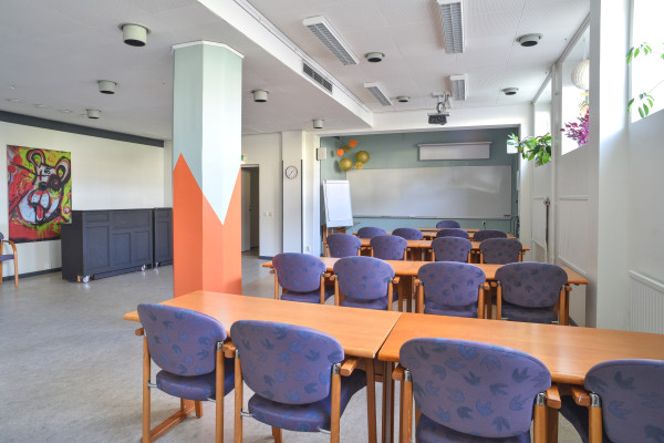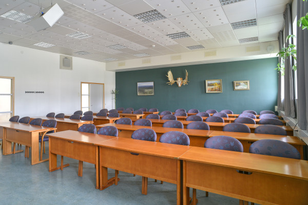 Skogen (Lokal 1) är en av våra större förmöblerade lokaler och passar utmärkt för konferenser, utbildningar och större möten. Lokalen är möblerad i skolsittning och rymmer upp till 50 deltagare, men möblering kan anpassas efter behov.